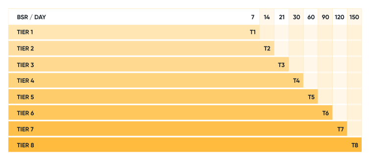 Your levels are determined by the number of BSRs. It’s so easy to make tier upgrades with our common pool system. Each level has a corresponding lock periods when you stake on BinStarter. By increasing staking BSR amount, users can easily switch to a higher tier without waiting for the unstake time. Lock periods for BinStarter Tiers are as follows.